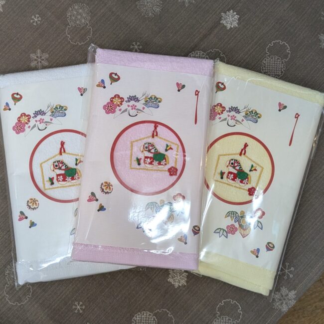 新春はお買上げ(金額は問いません)の皆様に毎年恒例の「干支の刺繍タオル」を差し上げてます。なくなり次第終了となります。