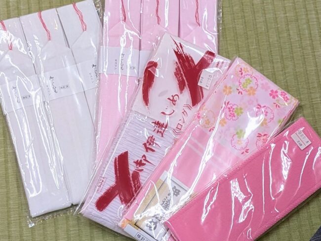 着崩れを防ぐ「腰ひも」と「伊達締め」 「本数は足りていますか?」。袴は帯の位置が高いため、しっかりと固定できる腰ひも(4〜5本)と、胸元を整える伊達締めが必須です。