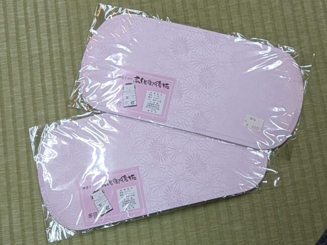 「後板が活躍」 袴に使う半幅帯の帯板(前板)は振袖の変わり結びに使う「後板」が長さが丁度良く、使いやすいのでおすすめです。